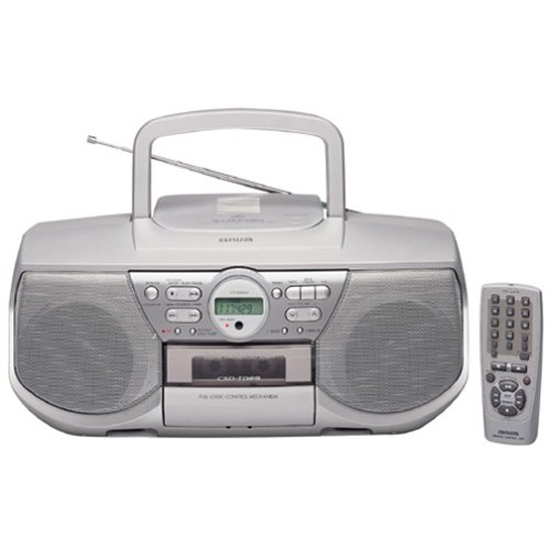 The Aiwa CSD-TD69 is a portable audio system designed for versatile media playback. It features a top-loading CD player, a front-loading cassette deck, and a digital-synthesized AM/FM radio tuner. The unit is equipped with stereo speakers and can be powered by AC current or batteries for portability. A remote control is included for convenient operation.