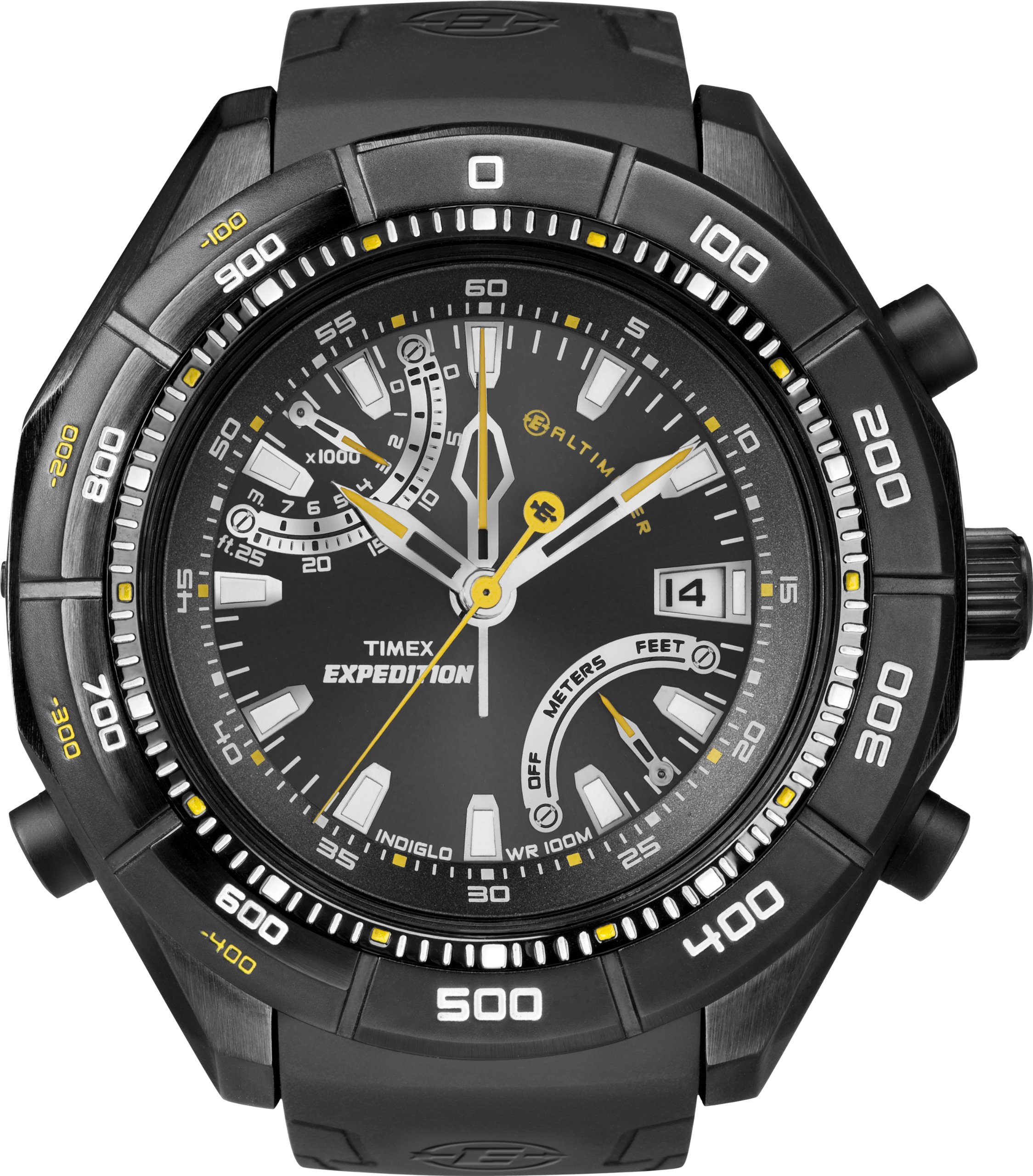 Welcome to the user manual for your TIMEX Expedition E-Altimeter Watch, Model T49795. This robust timepiece is designed for outdoor enthusiasts, featuring a durable stainless steel case, a comfortable rubber strap, and an advanced E-altimeter function. It combines classic watch features with specialized instruments to assist you in your adventures.