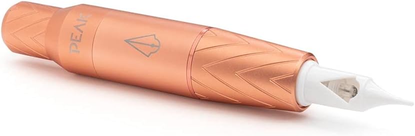 Figure 1: Peak Elara Pen Permanent Makeup Machine with a needle cartridge inserted, showcasing its sleek rose gold design.