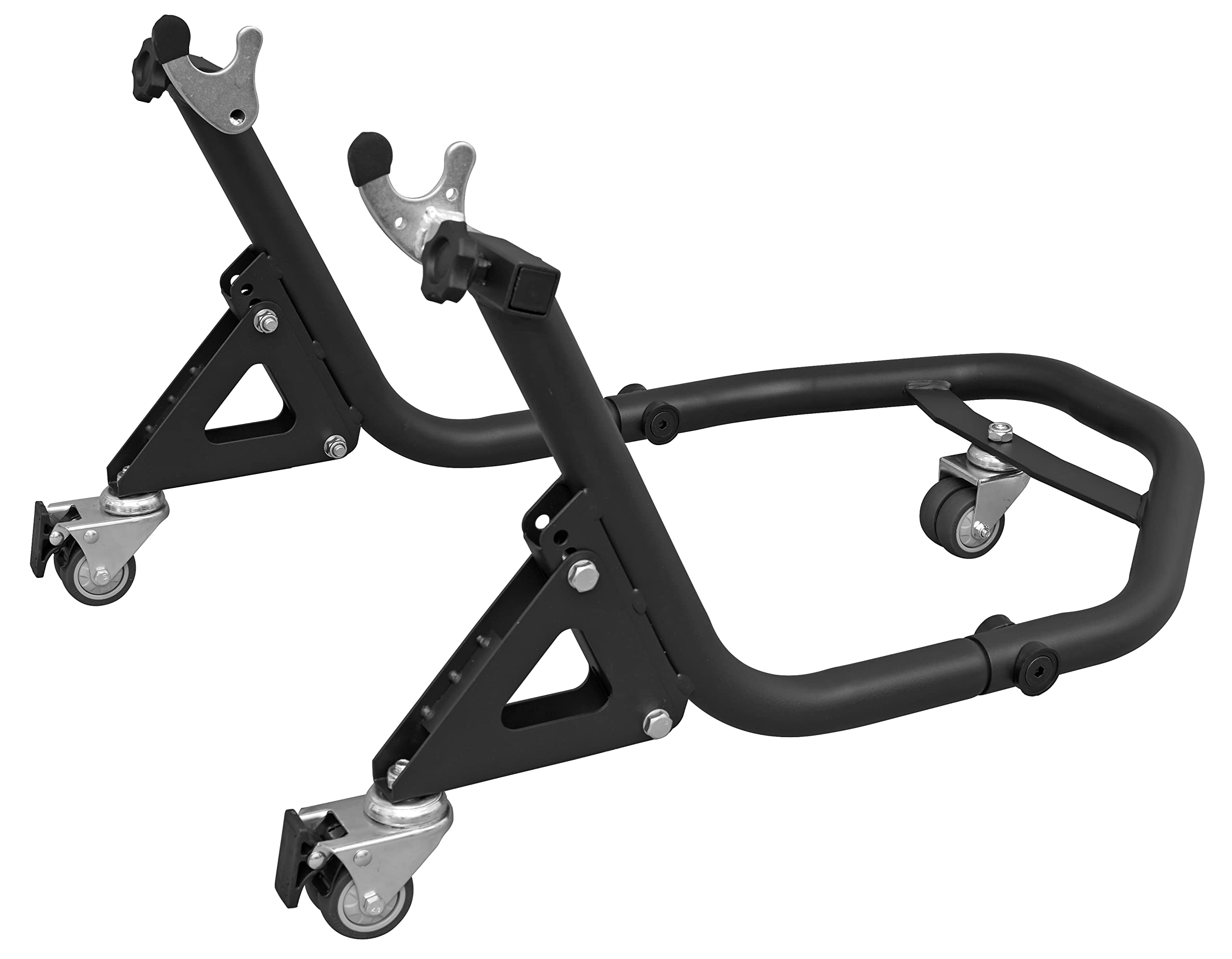Soluzzjoni: Ensure the motorcycle is on a flat, level, and stable surface. Verify that the support arms are adjusted correctly and securely tightened to the motorcycle's swingarm width. Check that all caster wheels are functioning properly and are not obstructed. - Issue: Difficulty adjusting the width of the support arms.