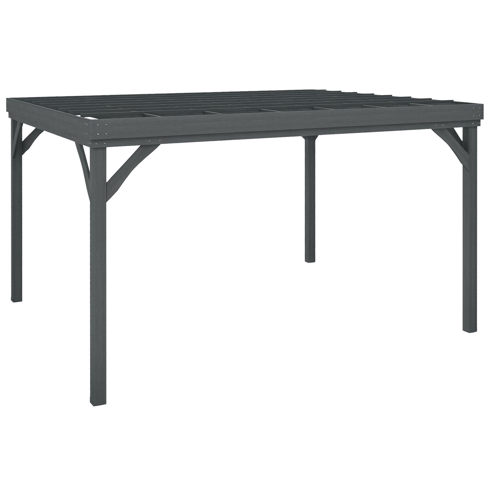 This pergola is constructed from paint-protected fir wood, designed to endure outdoor conditions year-round. To maintain its appearance and structural integrity: