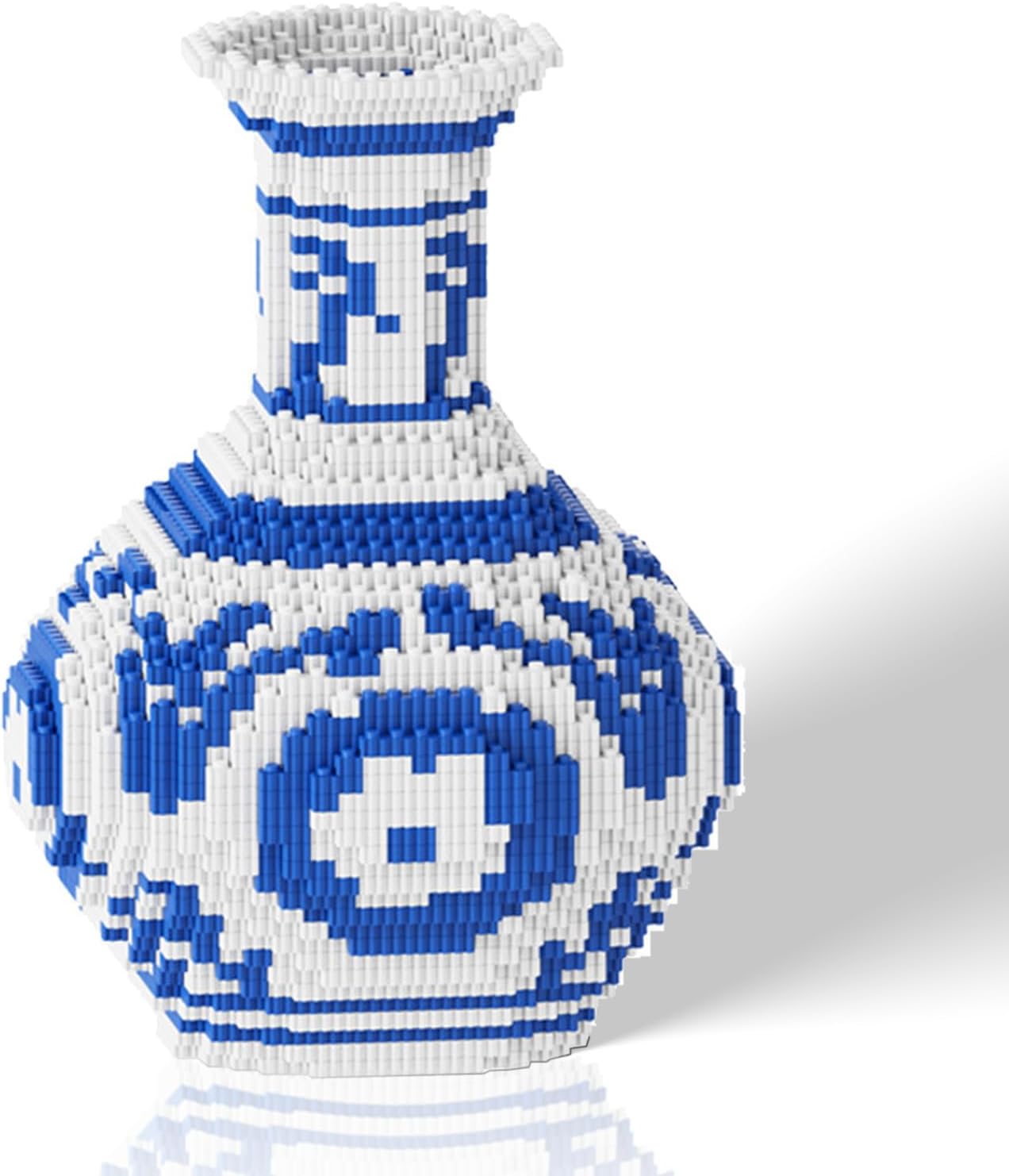 This JQARCH Blue and White Vase Micro Building Blocks Set (Model 6829) allows for the construction of a decorative vase using 3,200 micro-sized building blocks. The set is designed for adults and offers a detailed, intricate building experience, resulting in a unique display piece.
