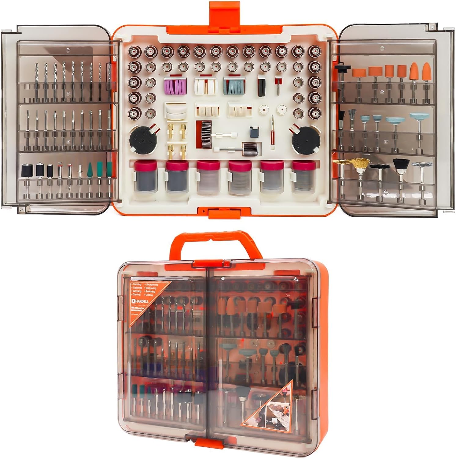 Figure 1: HARDELL 508-Piece Rotary Tool Accessories Kit in its storage case.