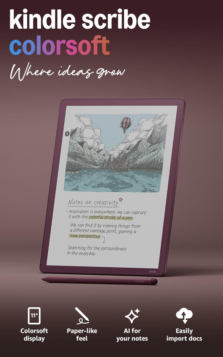 This manual provides instructions for the setup, operation, maintenance, and troubleshooting of your Amazon Kindle Scribe Colorsoft. The Kindle Scribe Colorsoft is an advanced e-reader and digital notebook featuring an 11-inch paper-like color display and a Premium Pen for a natural writing experience. It is designed for reading, note-taking, and document management.