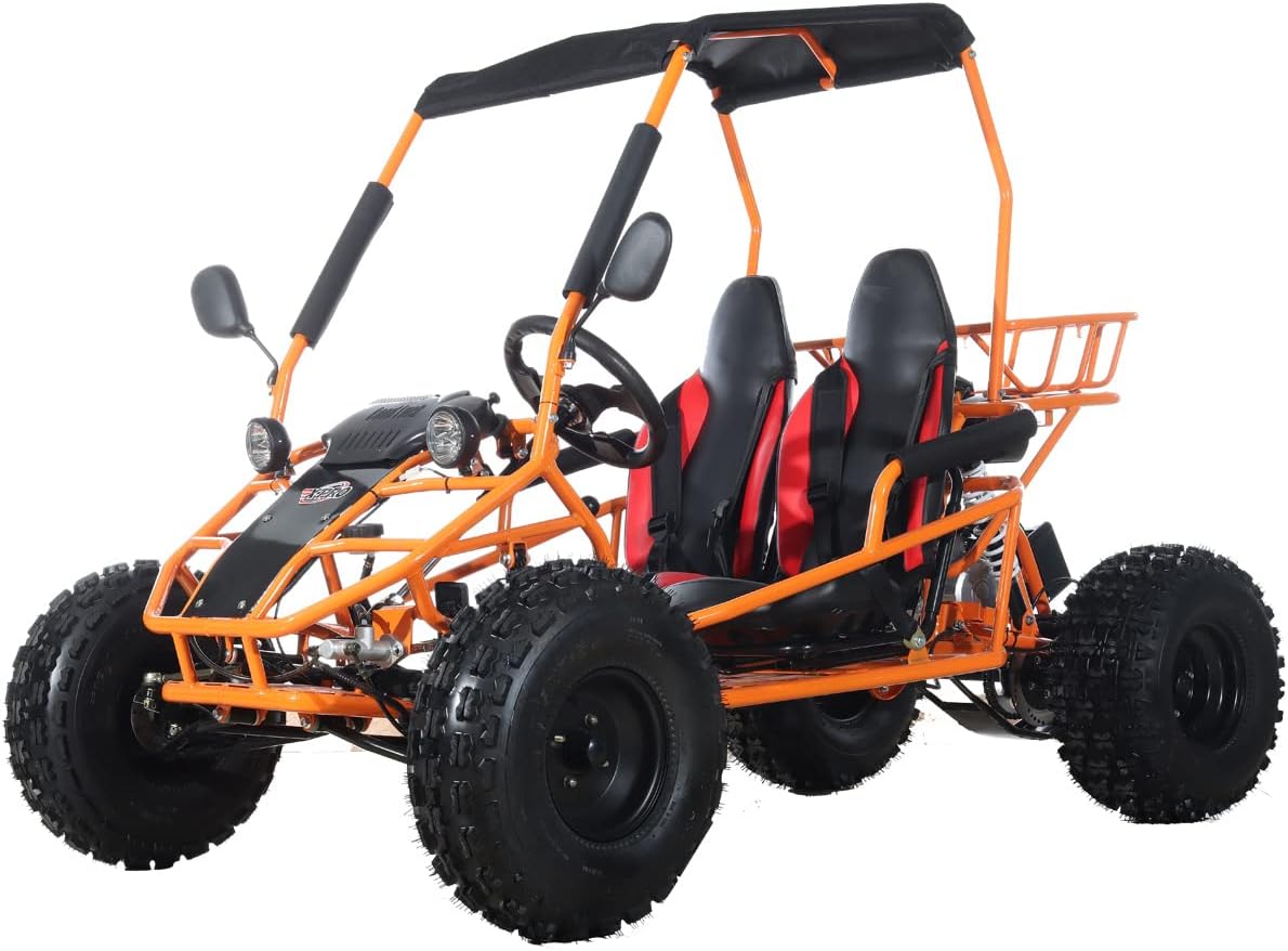 Before starting, ensure all safety checks are complete, including seatbelts fastened and clear surroundings. The go-kart features a 3-speed semi-automatic transmission with reverse. Use the key start to ignite the engine. Always operate at a safe speed appropriate for the terrain and your skill level. Do not shift into forward or reverse unless the vehicle is stopped and at idle.