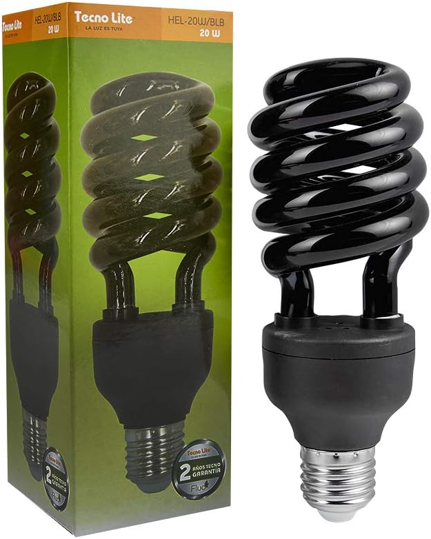 Thank you for choosing the Tecnolite HEL-20W/BLB Black Light Fluorescent Spiral Bulb. This bulb is designed to produce ultraviolet (UV) light, creating a distinctive black light effect that causes white or neon materials to fluoresce. It is suitable for various applications, including special occasions, themed events, and enhancing specific environments.